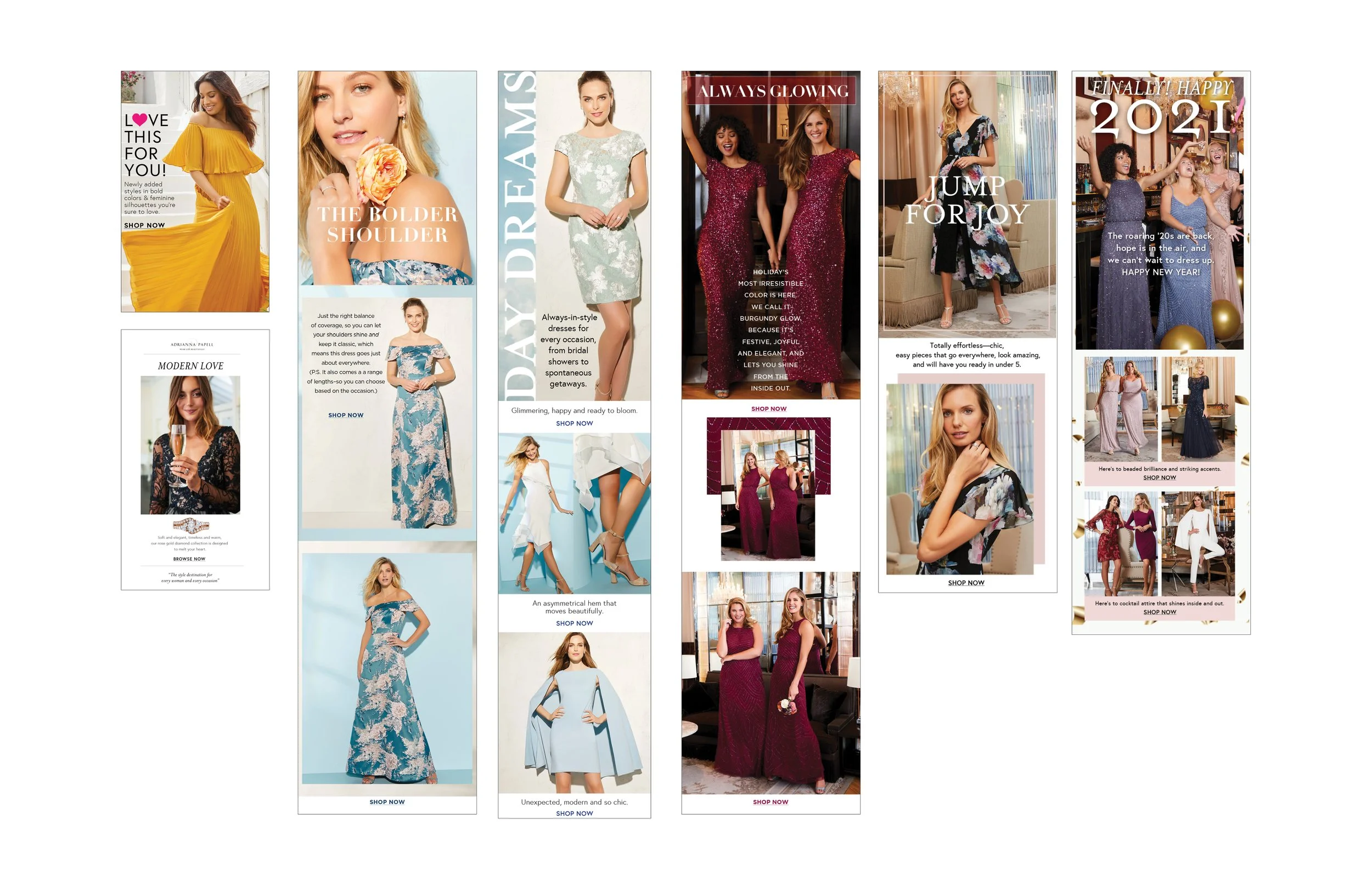 Created target original content for higher-priced custom collection, Adrianna Papell Platinum.
